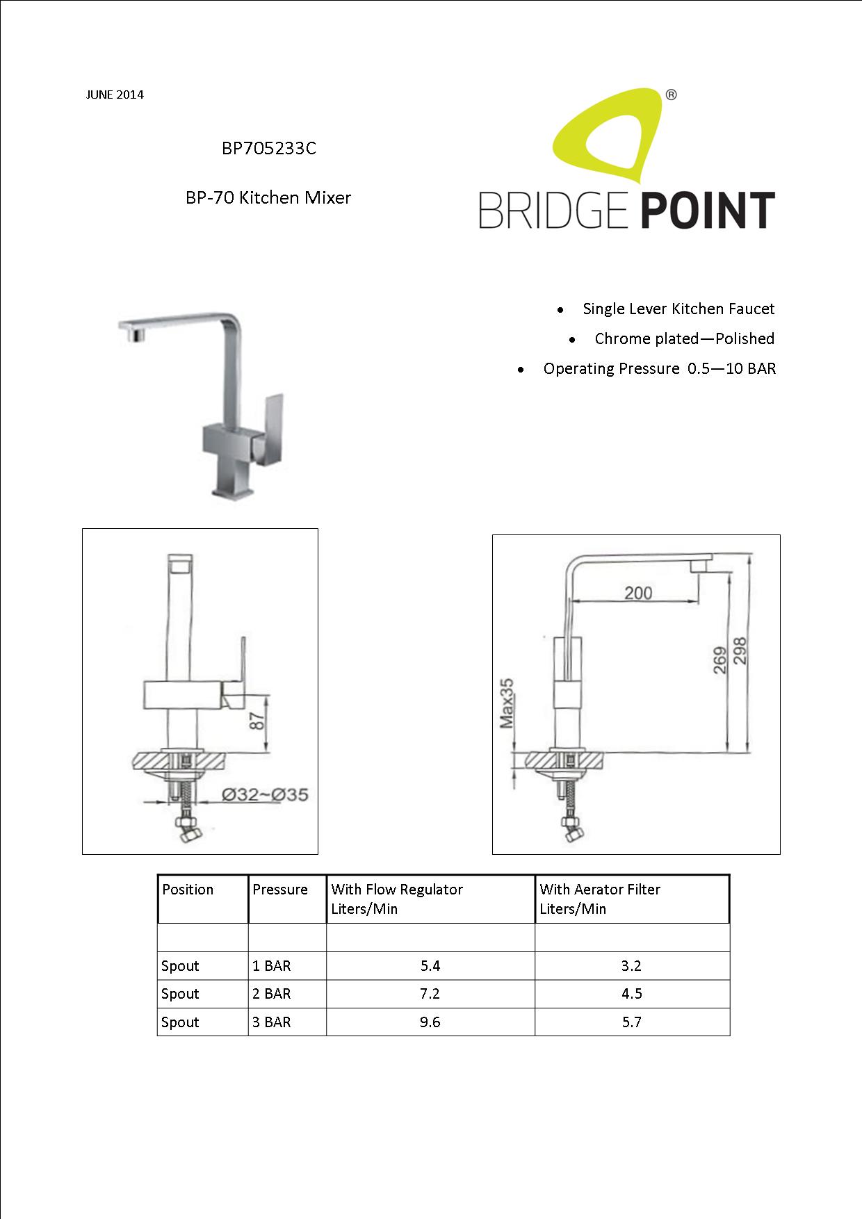 - Can operate between 1.0- 5.0 Bar of pressure
