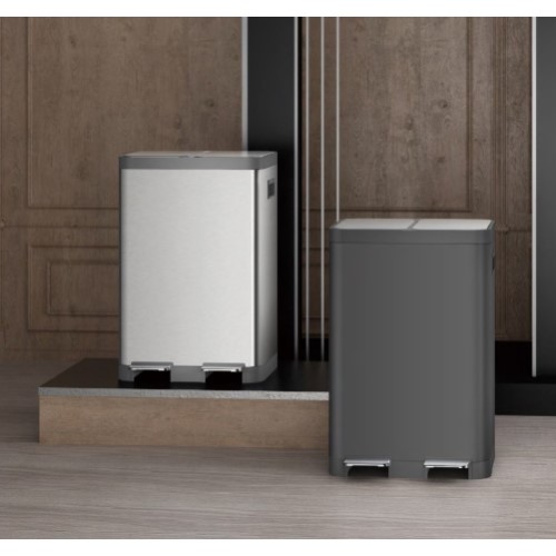 12L+12L Satin Silver Recycling Pedal Bin